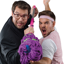 FLO UND WISCH sind zwei Prachtexemplare dieser Gattung: auf der Bühne sind die beiden Mitt-Zwanziger die gefeierten Helden, deren Songs nicht nur unter die Haut, sondern auch direkt ins Zwerchfell gehen! Der eine ein flauschiger Hüne, der am Klavier beweist, dass er die Musik mindestens so im Blut hat wie das Cholesterin – der andere ein geistreiches Energiebündel, das mit einem einzigen Blick Frauenherzen zum Schmelzen und Männerseelen zum Fremdschämen bringt. Abend für Abend begeistern sie das tobende Publikum, doch abseits des Rampenlichts fristen die beiden besten Stimmen der deutschsprachigen Musikkabarett-Szene ein bescheidenes Leben: sie machen die Wäsche, bügeln die Blusen ihrer Liebsten, kochen Cremesüppchen und haben auch aus anderen Gründen andauernd den Suppenschlitz offen. Was man als stolzer Waschmann eben so tut!